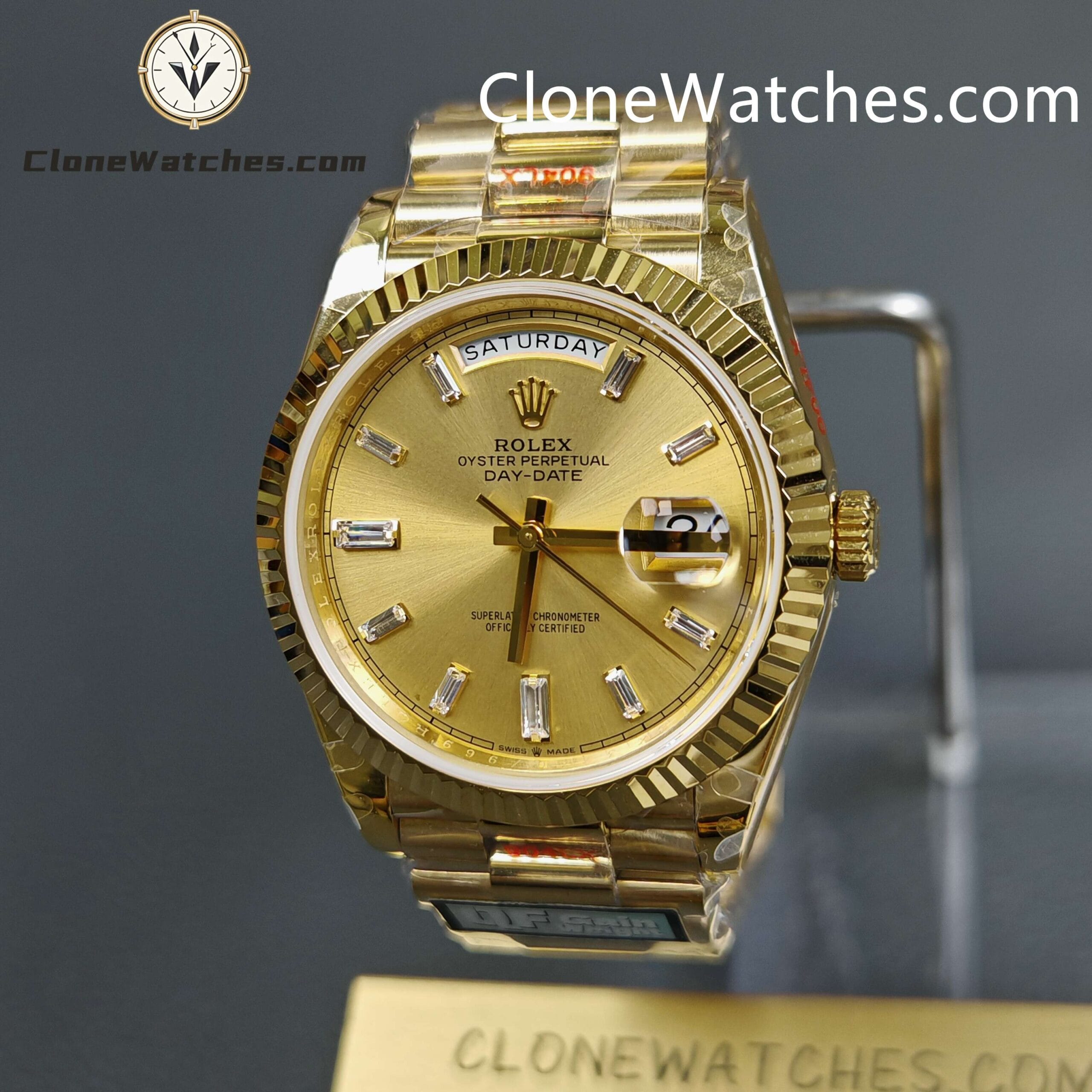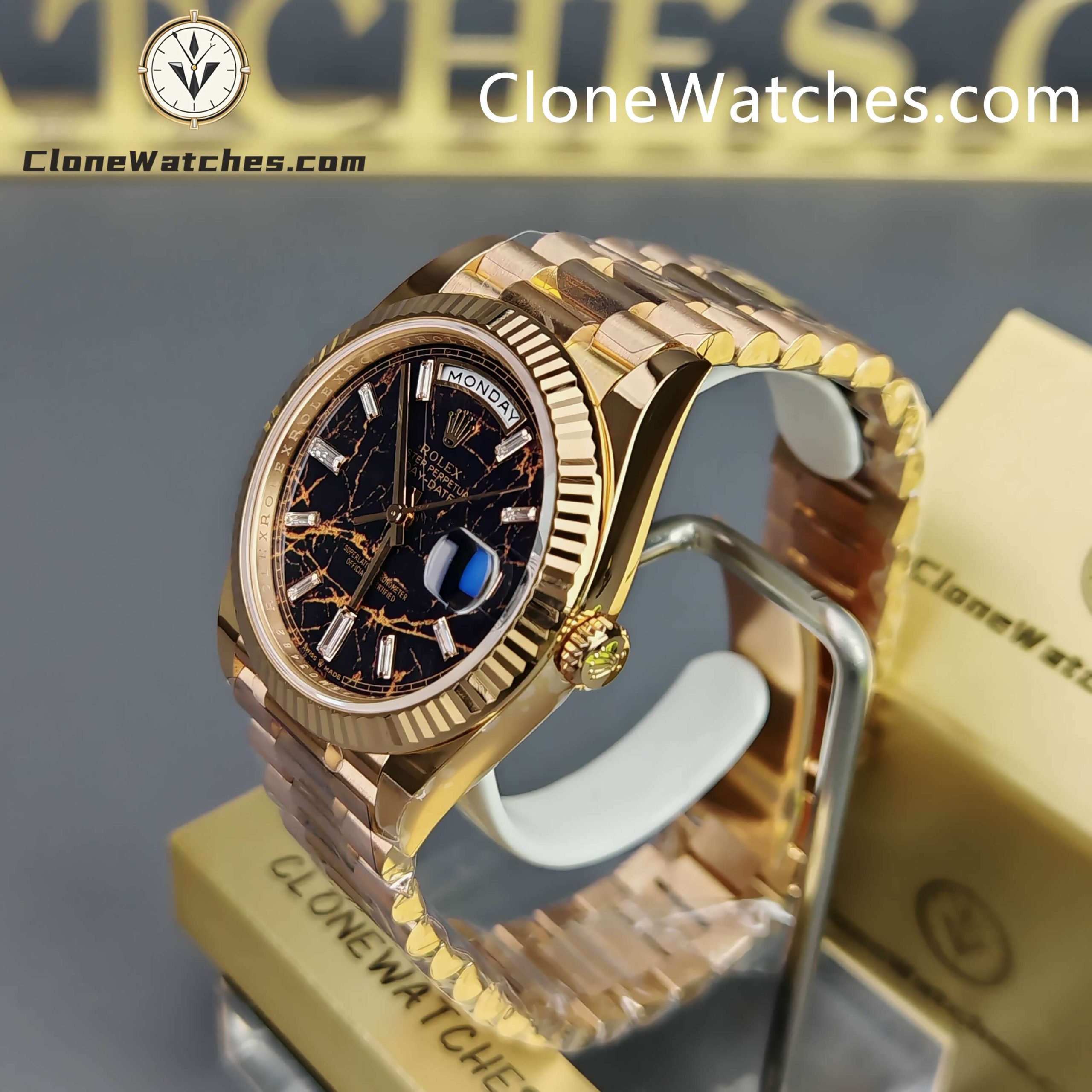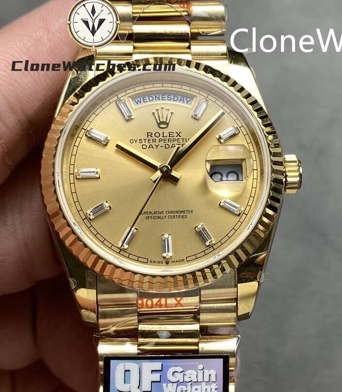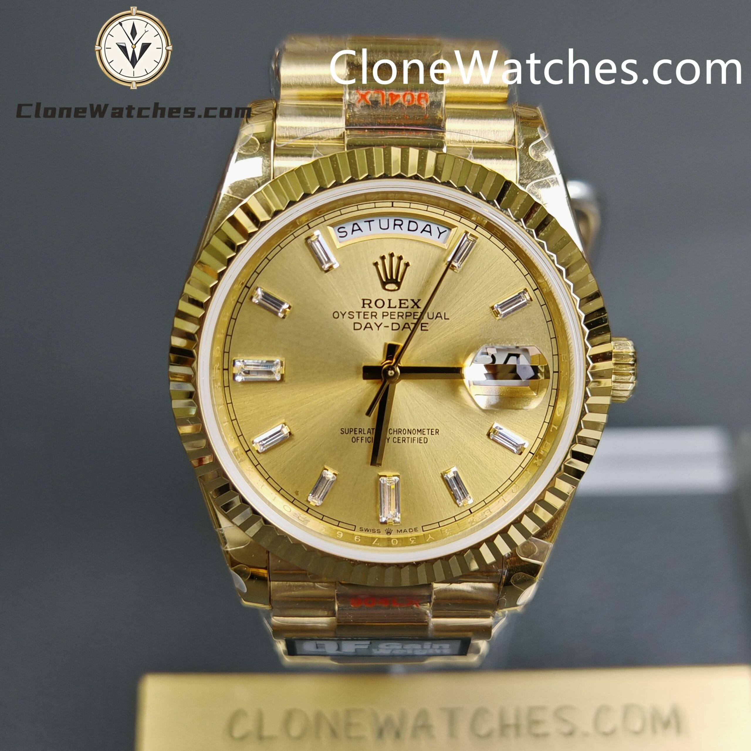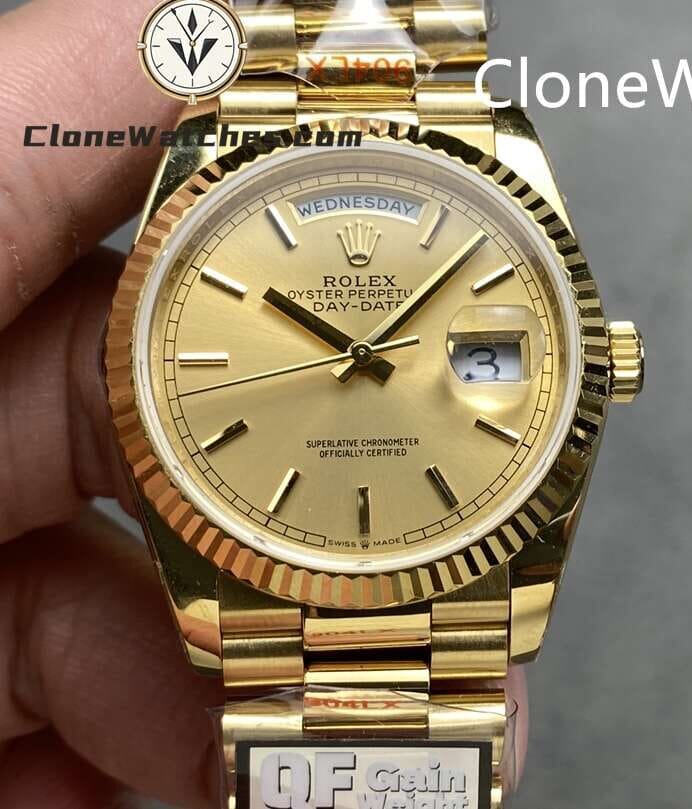 This classic watch features a Day Date display that offers a rich look. Admired for its luxurious design, the Rolex Day-Date is charming thanks to exclusive materials such as 18K gold or platinum. A reliable Swiss movement ensures the watch’s precision, making it a coveted choice among collectors and connoisseurs alike. Try on the Rolex Day-Date and experience the pinnacle of luxury, elegance, and precise timekeeping in a genuine masterpiece watch.