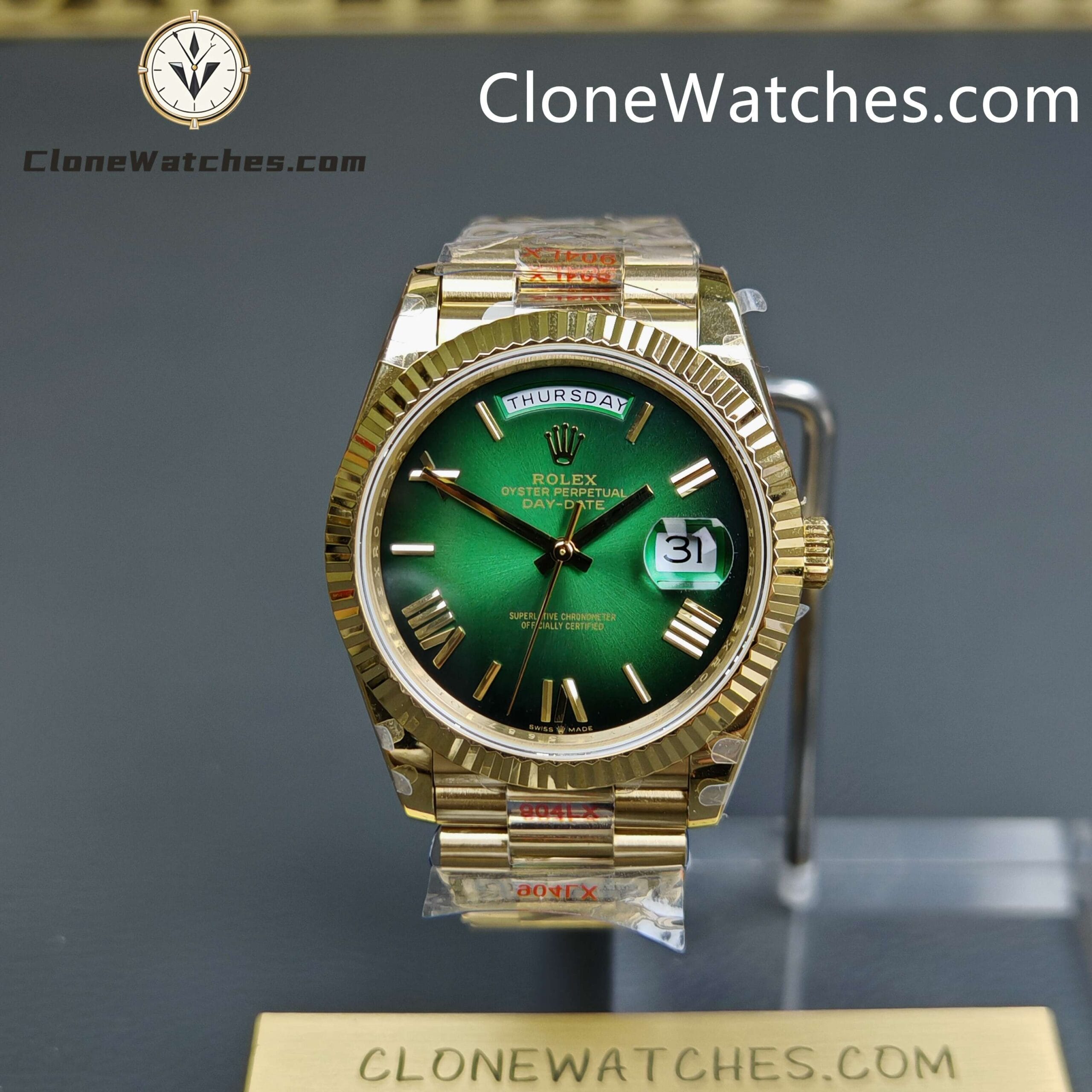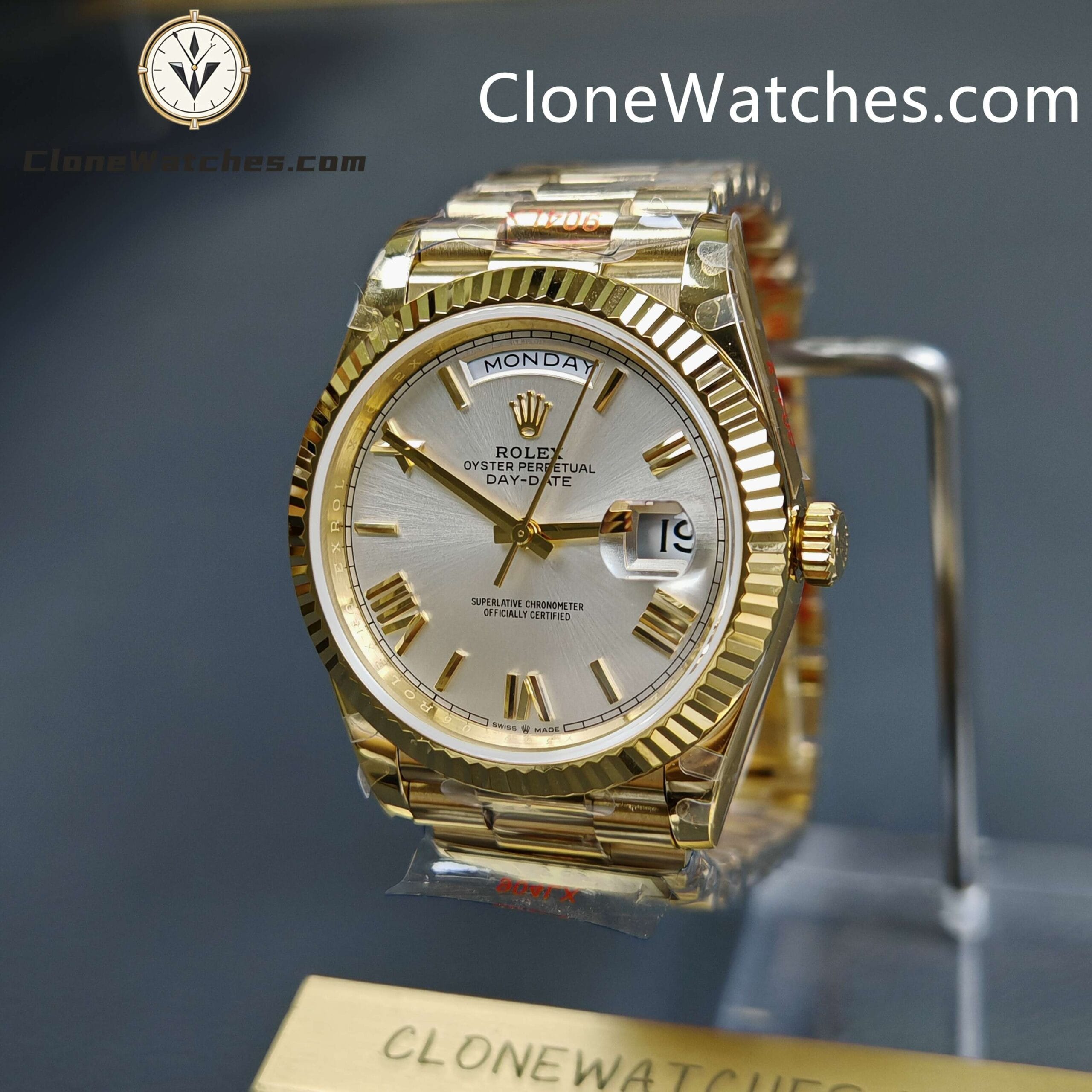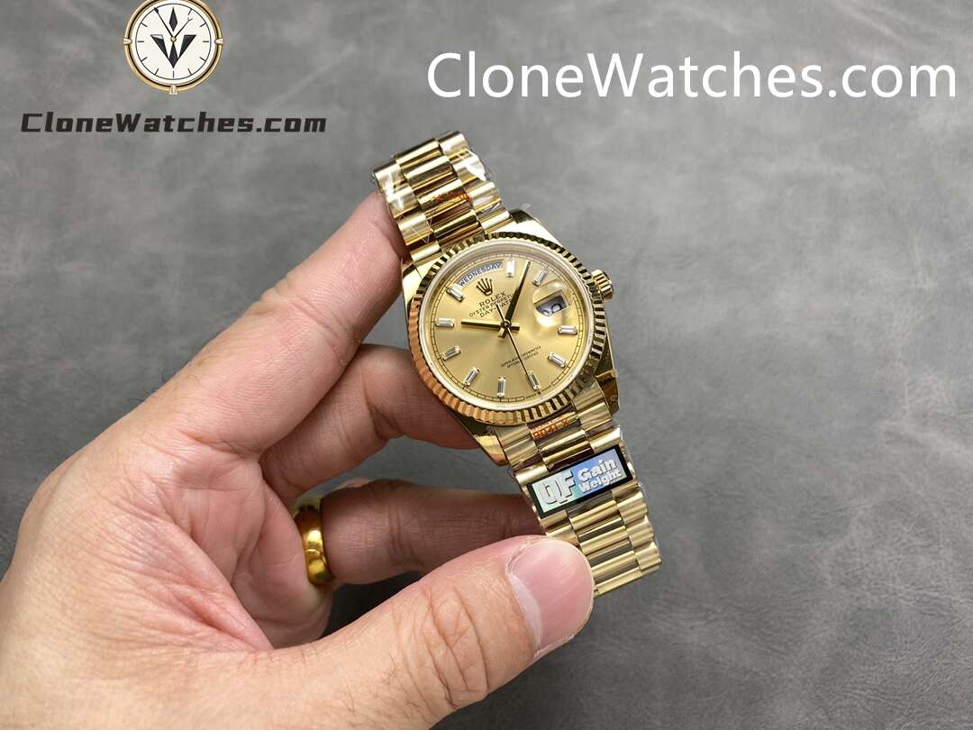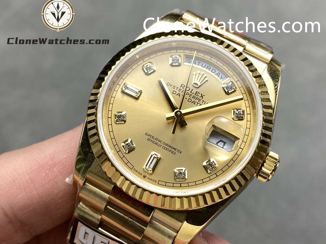 This classic watch features a Day Date display that offers a rich look. Admired for its luxurious design, the Rolex Day-Date is charming thanks to exclusive materials such as 18K gold or platinum. A reliable Swiss movement ensures the watch’s precision, making it a coveted choice among collectors and connoisseurs alike. Try on the Rolex Day-Date and experience the pinnacle of luxury, elegance, and precise timekeeping in a genuine masterpiece watch.