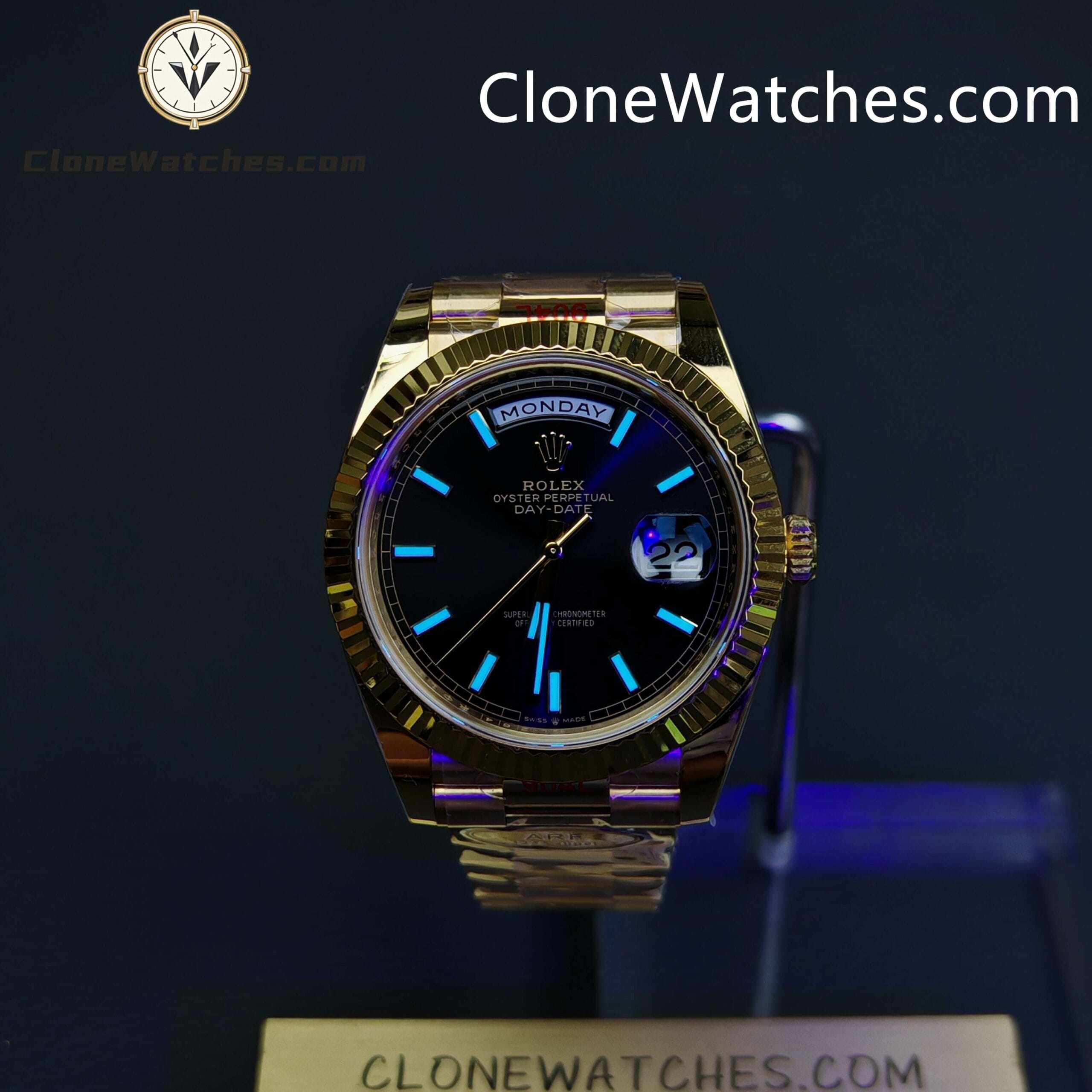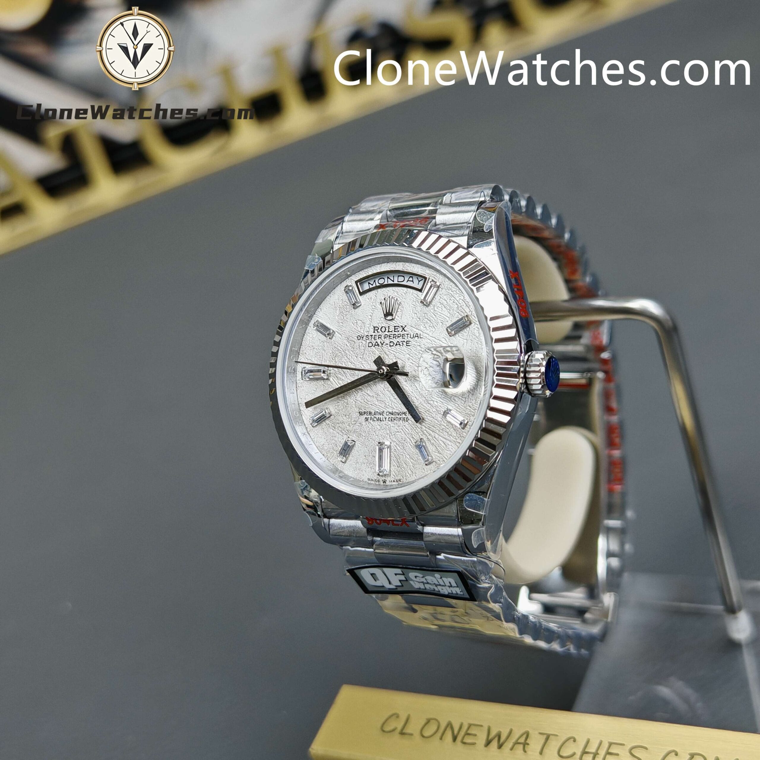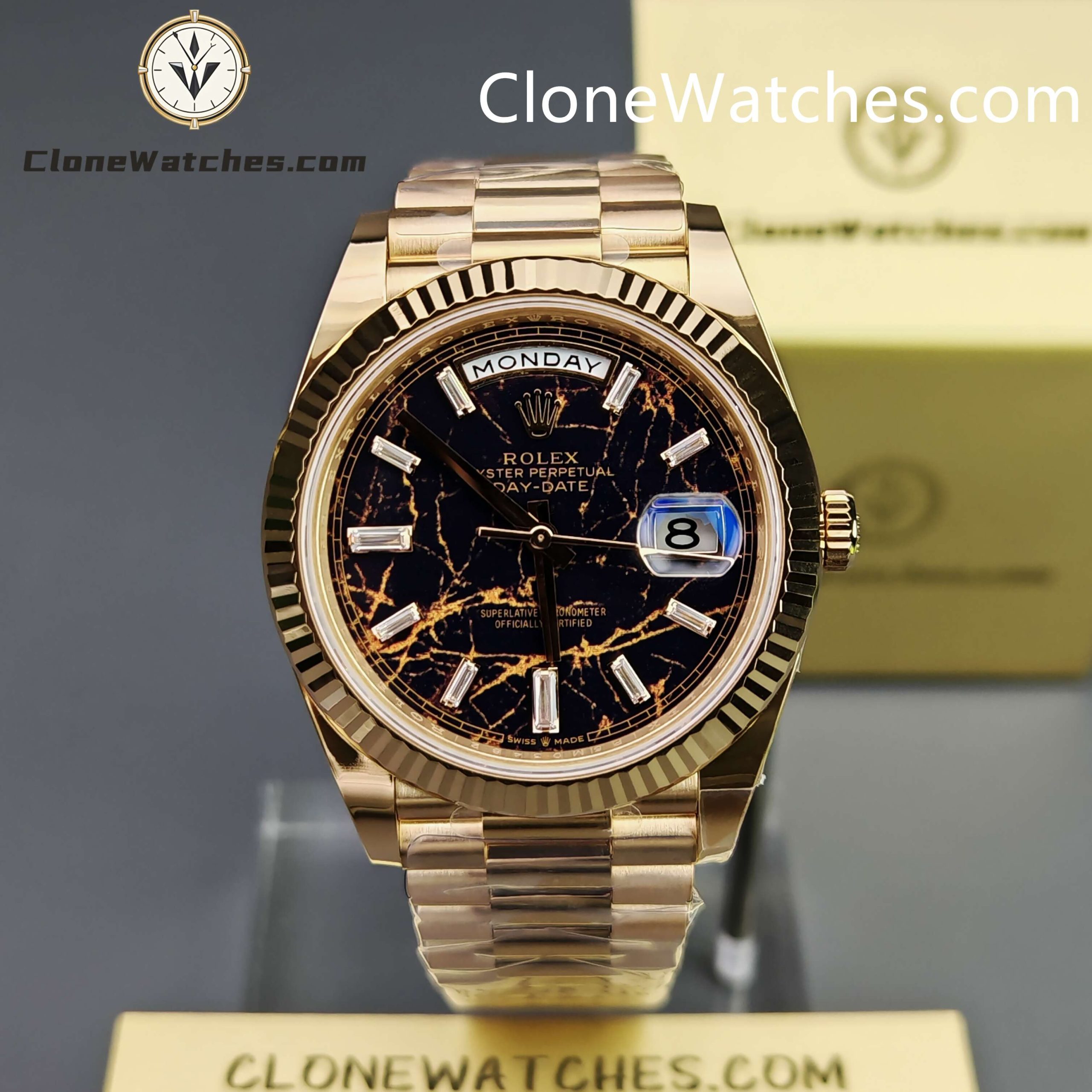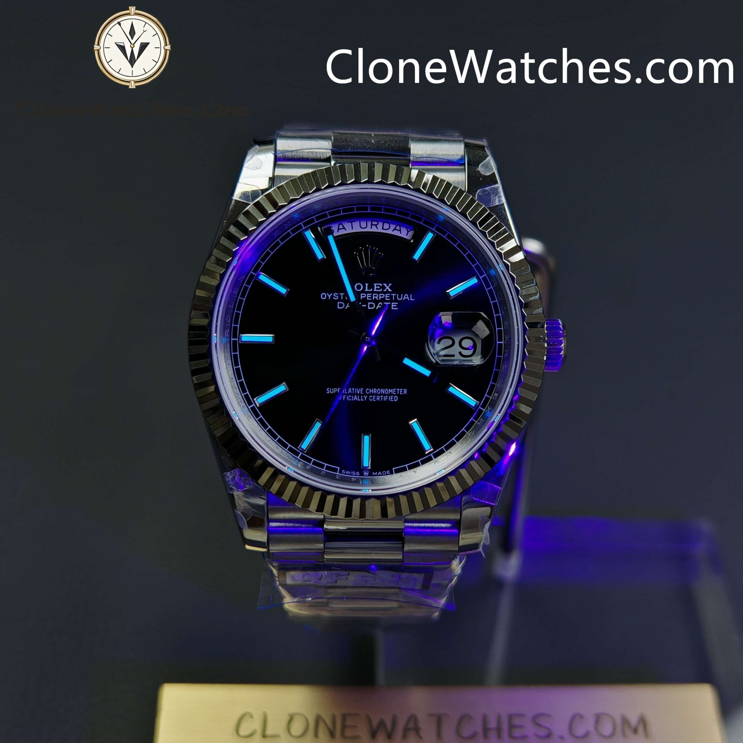 This classic watch features a Day Date display that offers a rich look. Admired for its luxurious design, the Rolex Day-Date is charming thanks to exclusive materials such as 18K gold or platinum. A reliable Swiss movement ensures the watch’s precision, making it a coveted choice among collectors and connoisseurs alike. Try on the Rolex Day-Date and experience the pinnacle of luxury, elegance, and precise timekeeping in a genuine masterpiece watch.