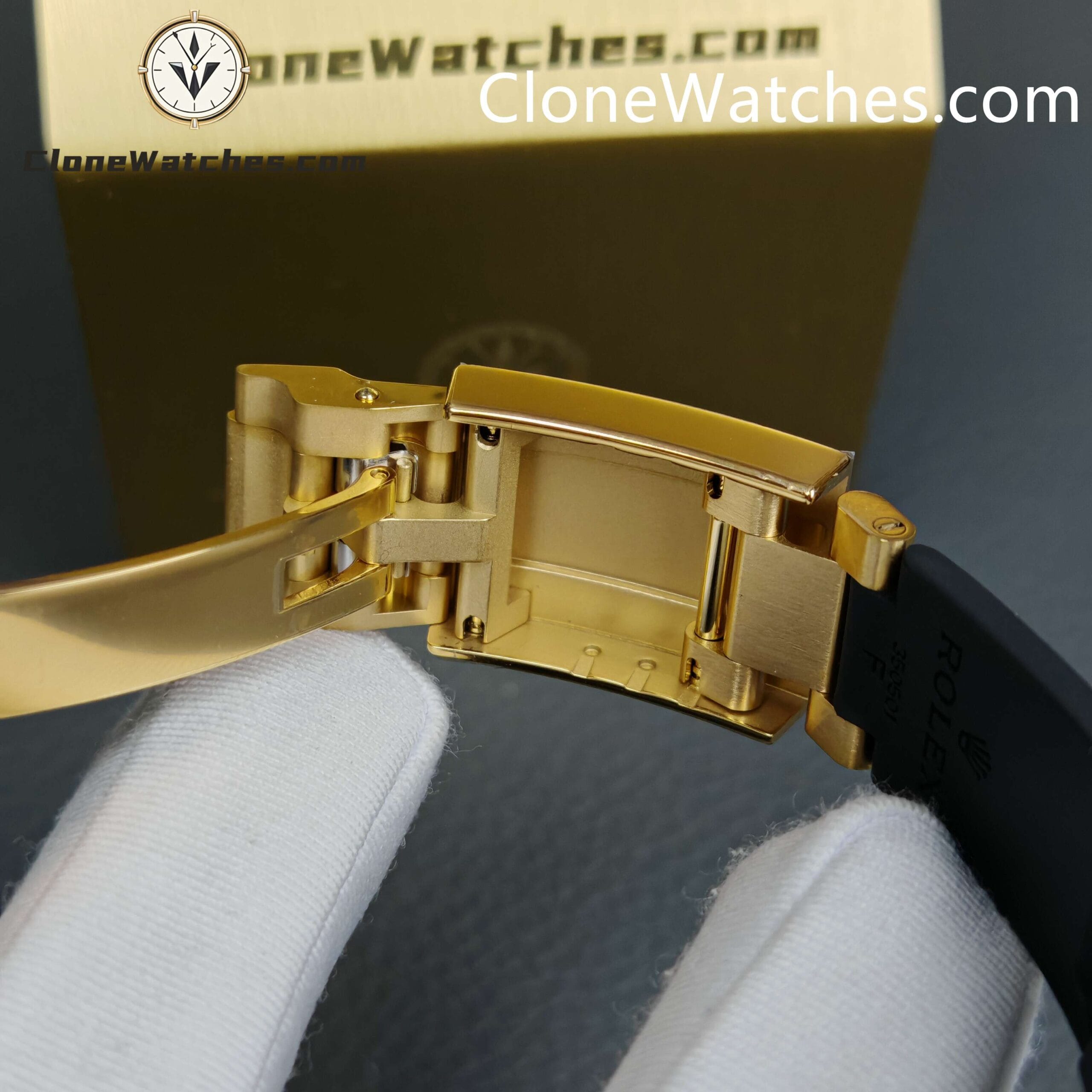 | FUNCTION | This Rolex Super Clone functions just like the original. Central hour and minute hands with small seconds at 6 o’clock. Timekeeping via central seconds hand, 30-minute counter at 3 o’clock and 12-hour counter at 9 o’clock. Stop seconds function for precise time setting. |