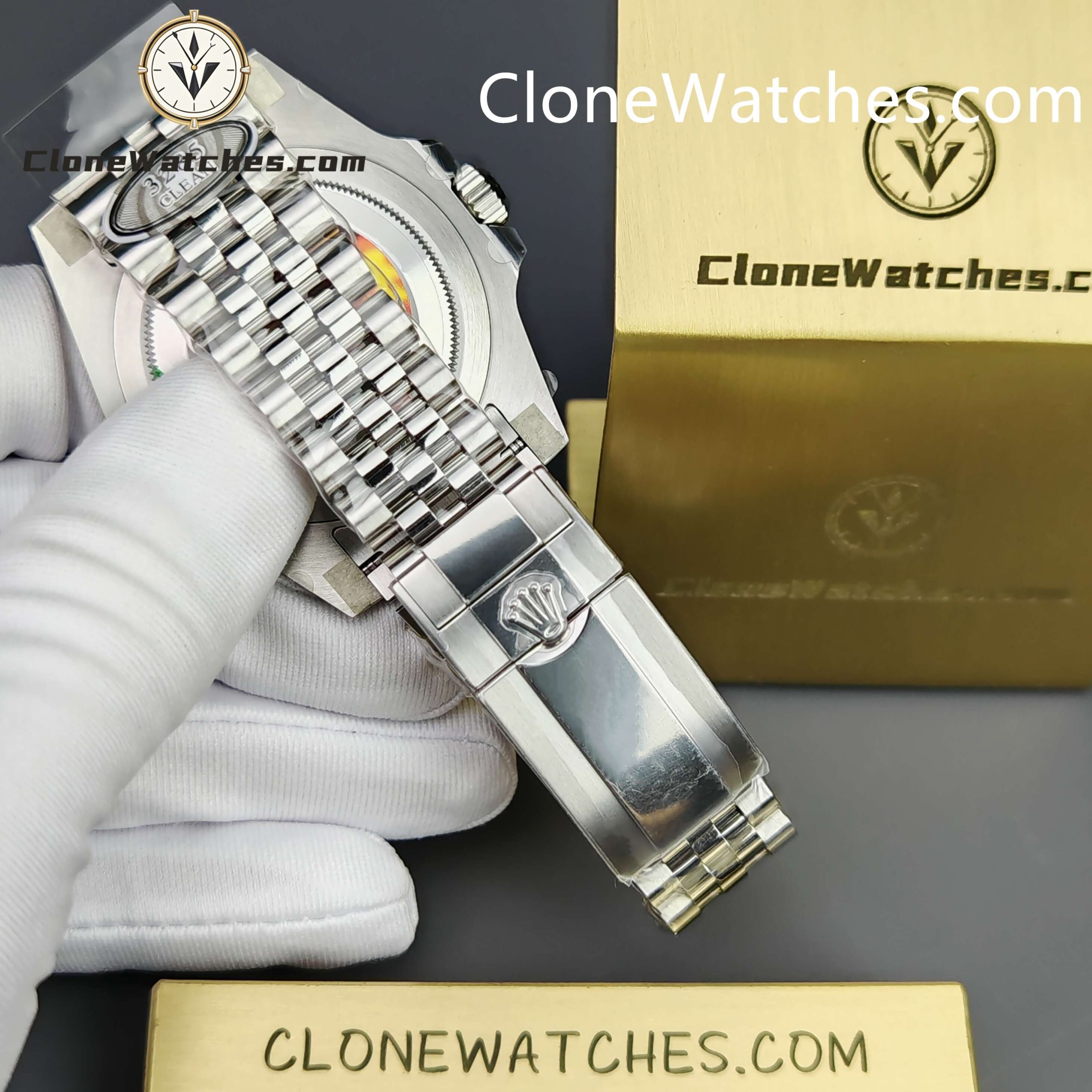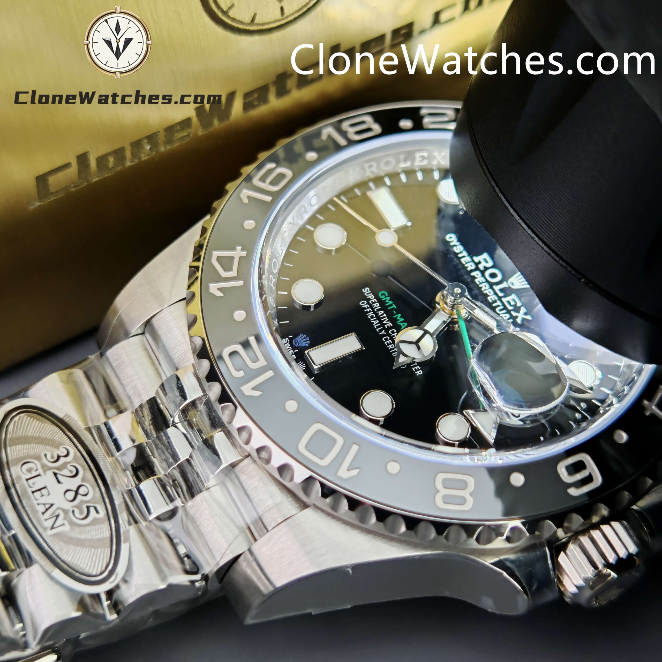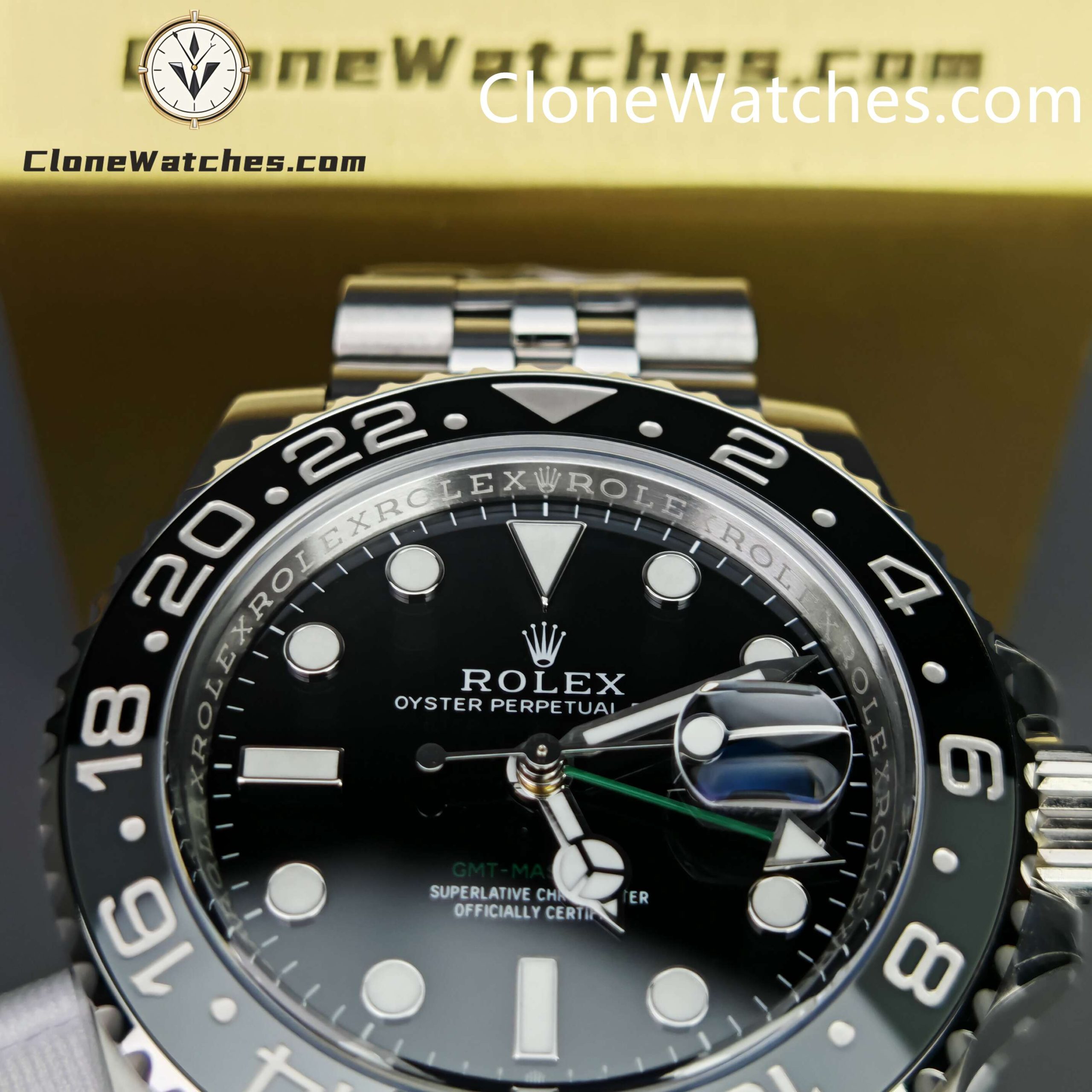 The Rolex GMT Master II Super Clone Watches are made from stainless steel 904L, which is a material that is known for its precision and durability. The ceramic bezel with numerals coated in platinum seamlessly blends into the design and maintains the authenticity of the original watch.
