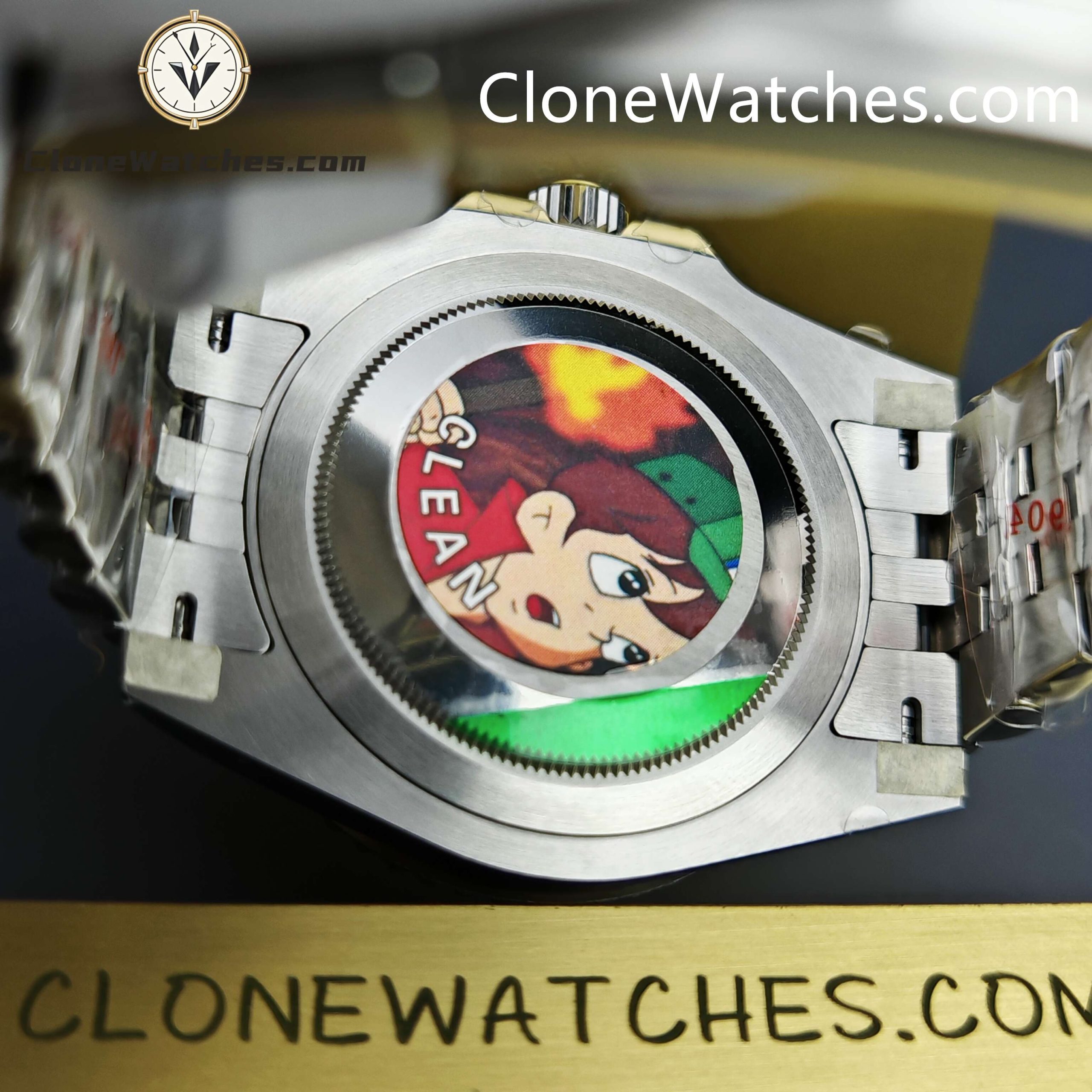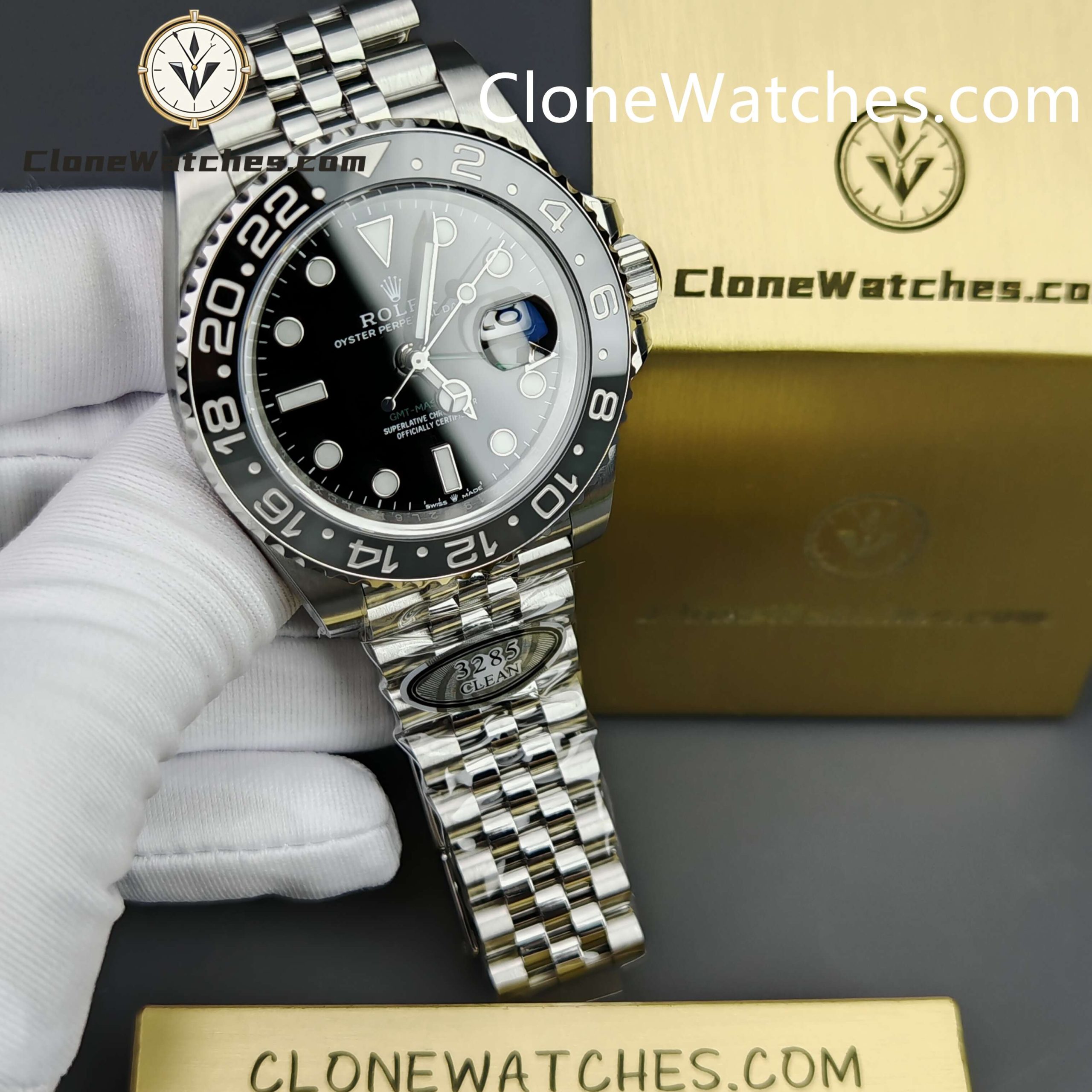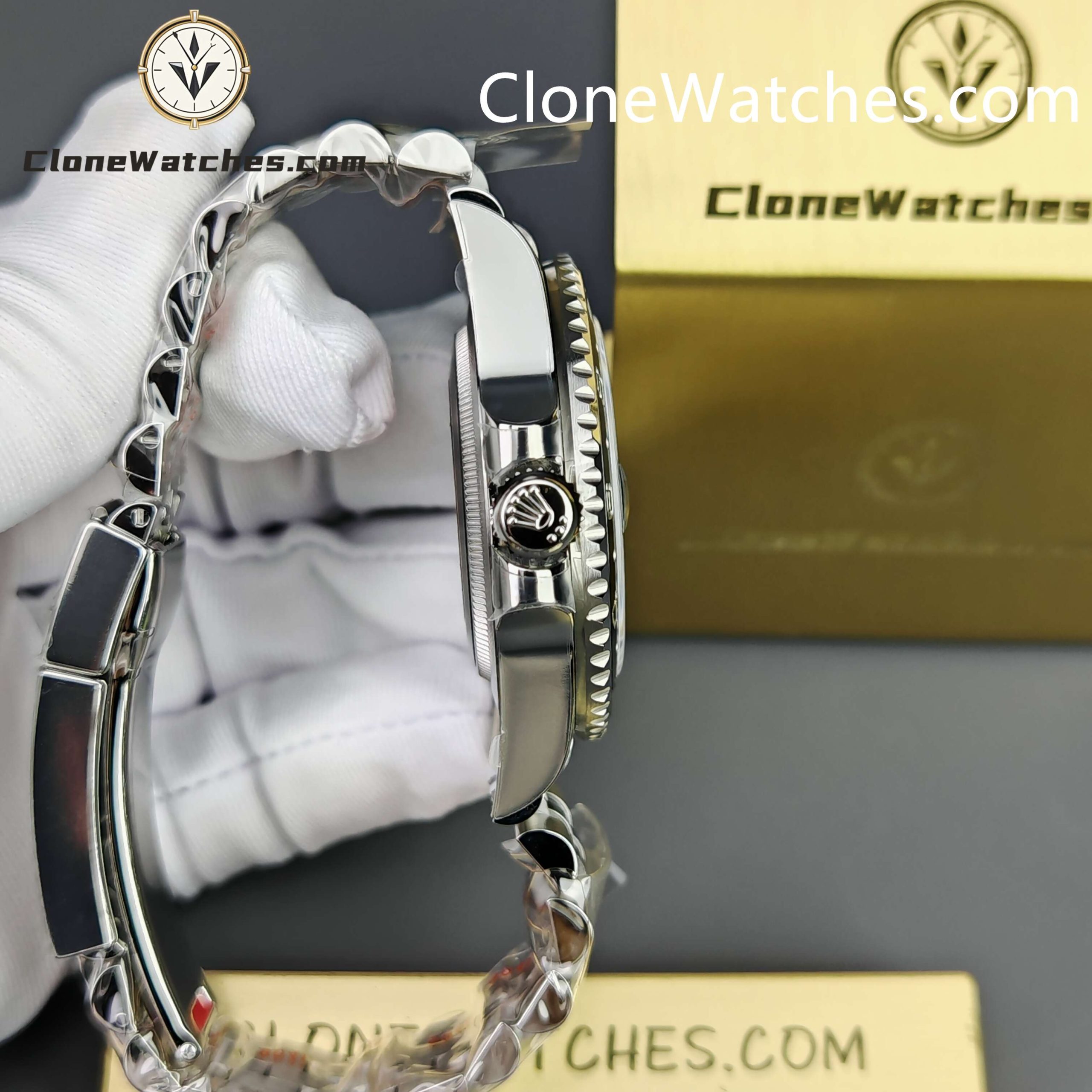 The Rolex GMT Master II Super Clone Watches are made from stainless steel 904L, which is a material that is known for its precision and durability. The ceramic bezel with numerals coated in platinum seamlessly blends into the design and maintains the authenticity of the original watch.