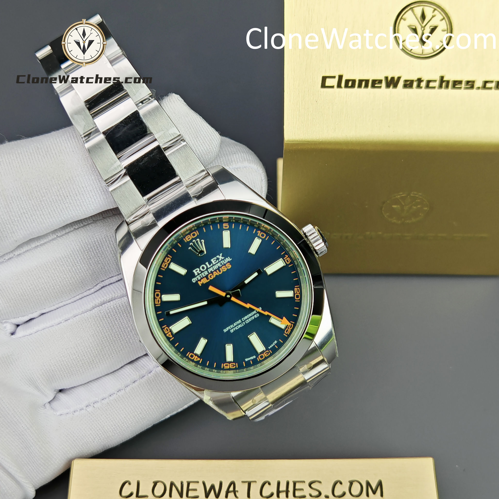 Rolex Super Clone Watches 1:1 Milgauss Blue Dial M116400GV-0002 3131 Movement