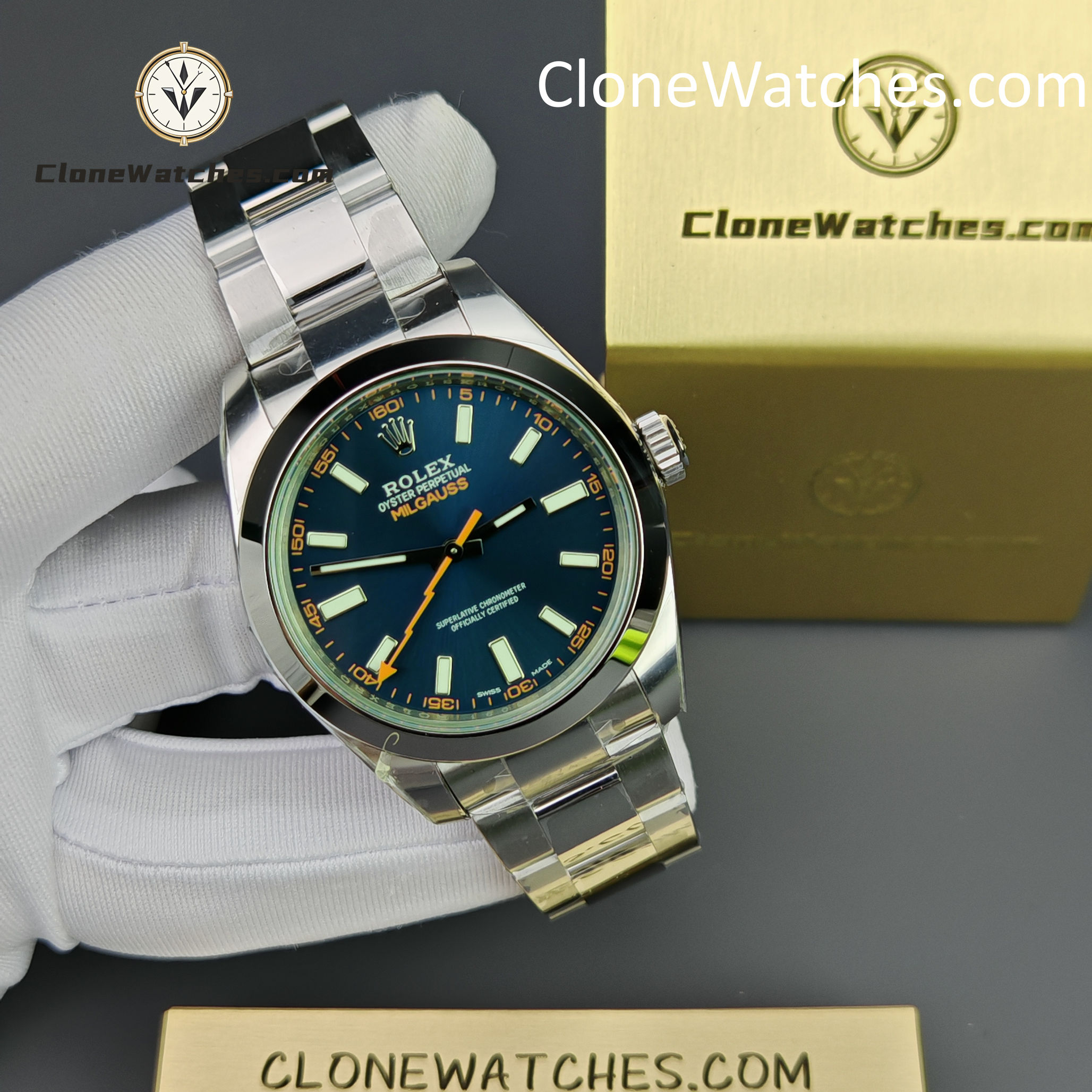 - STYLISH DESIGN : Super Clone Watches Rolex Milgauss M116400GV-0002 boasts a sophisticated dial in Blue that exudes an elegant and timeless aesthetic.