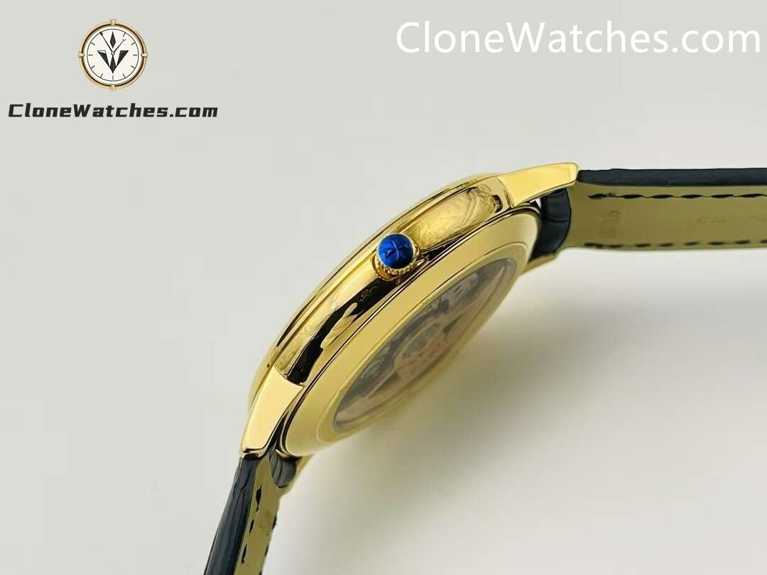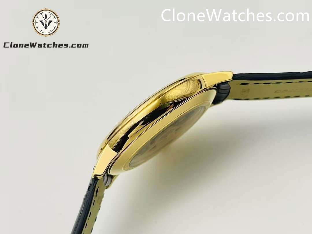 [Case] Size 40MMX9MM, perfectly round case, with micro-orbital lug design, making it fit the wearer’s wrist better. Each finished case must undergo strict quality control to restore the unique texture of the authentic product.[Movement] Clone Watches uses the self-produced 2450 movement. From the splint to the steel wheel and other parts, they are all carefully decorated by the watchmaker, and the automatic rotor is plated with 18k rose gold, presenting the original exquisite craftsmanship to the maximum extent.[Watch mirror] The front and back sapphire glass mirrors of Clone Watches are both anti-dizzy coated.[Strap] Double-layer Italian calfskin, with Maltese cross pin buckle.