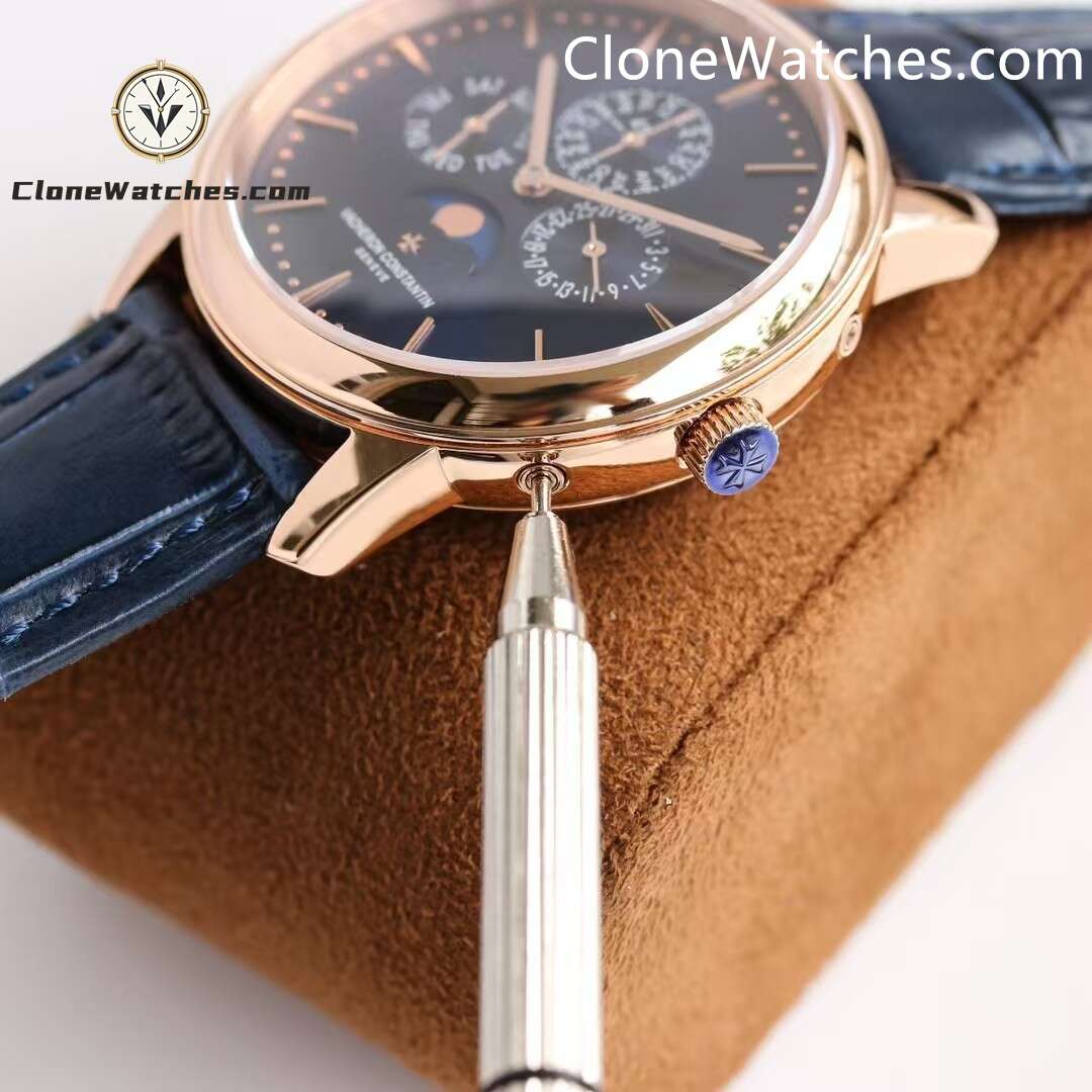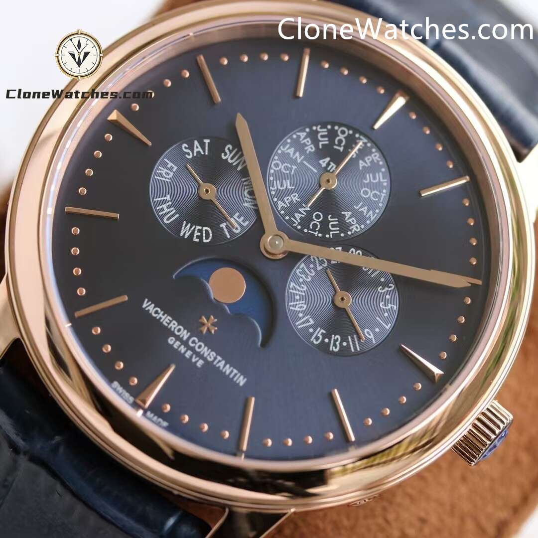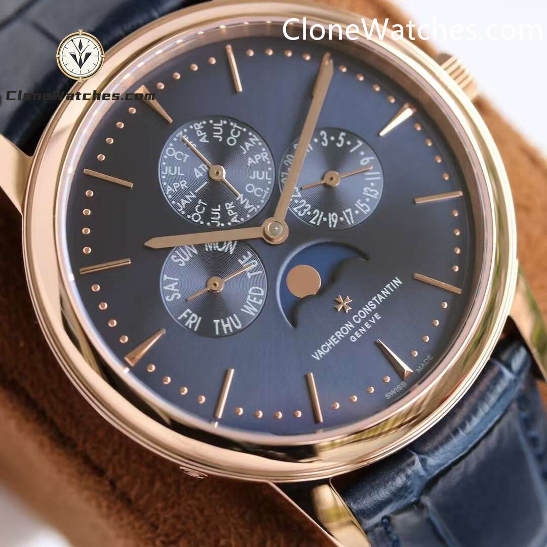 Vacheron Constantin Super Clone Watches 1:1 Patrimony Perpetual Calendar Rose Gold 43175/000R-B519 Blue Dial