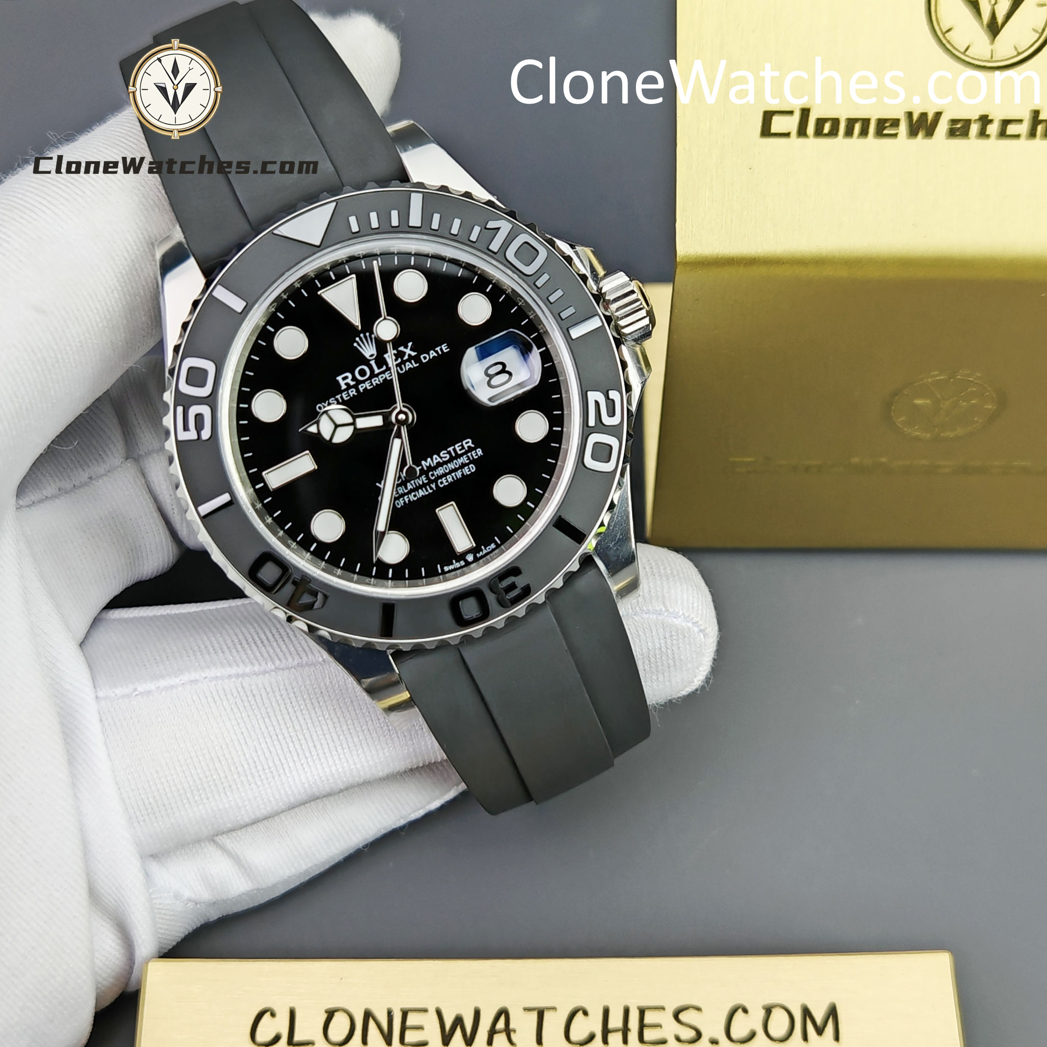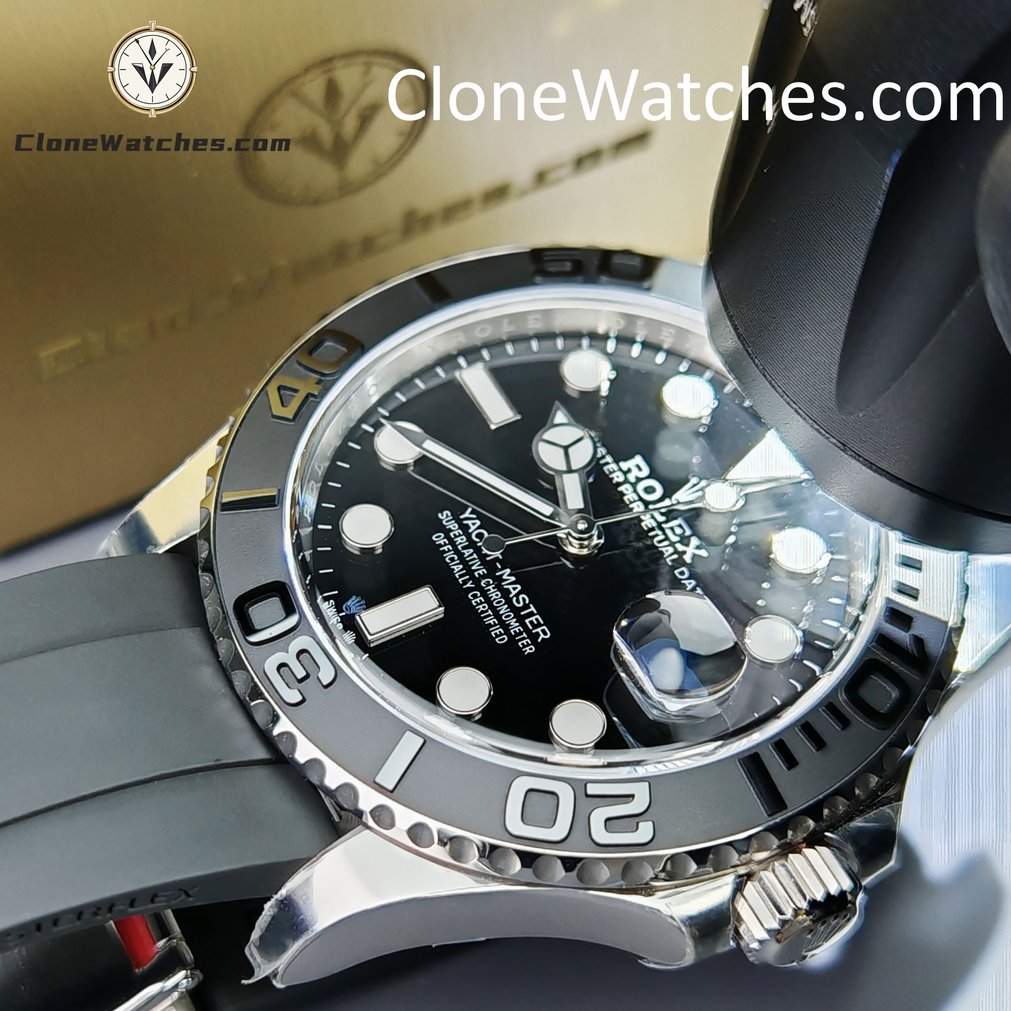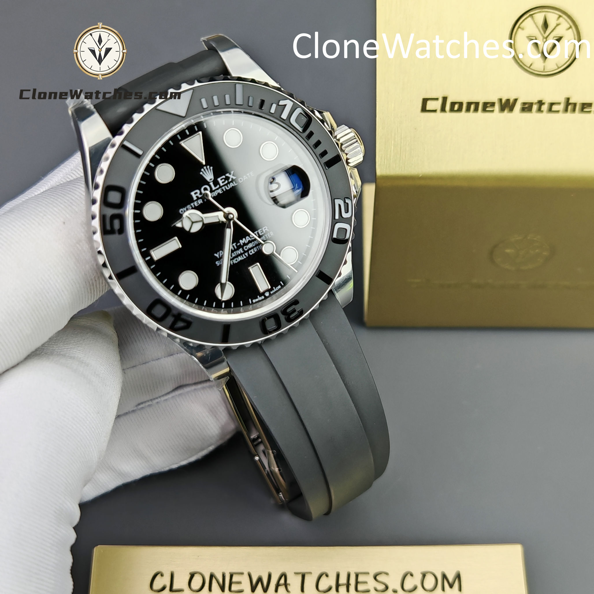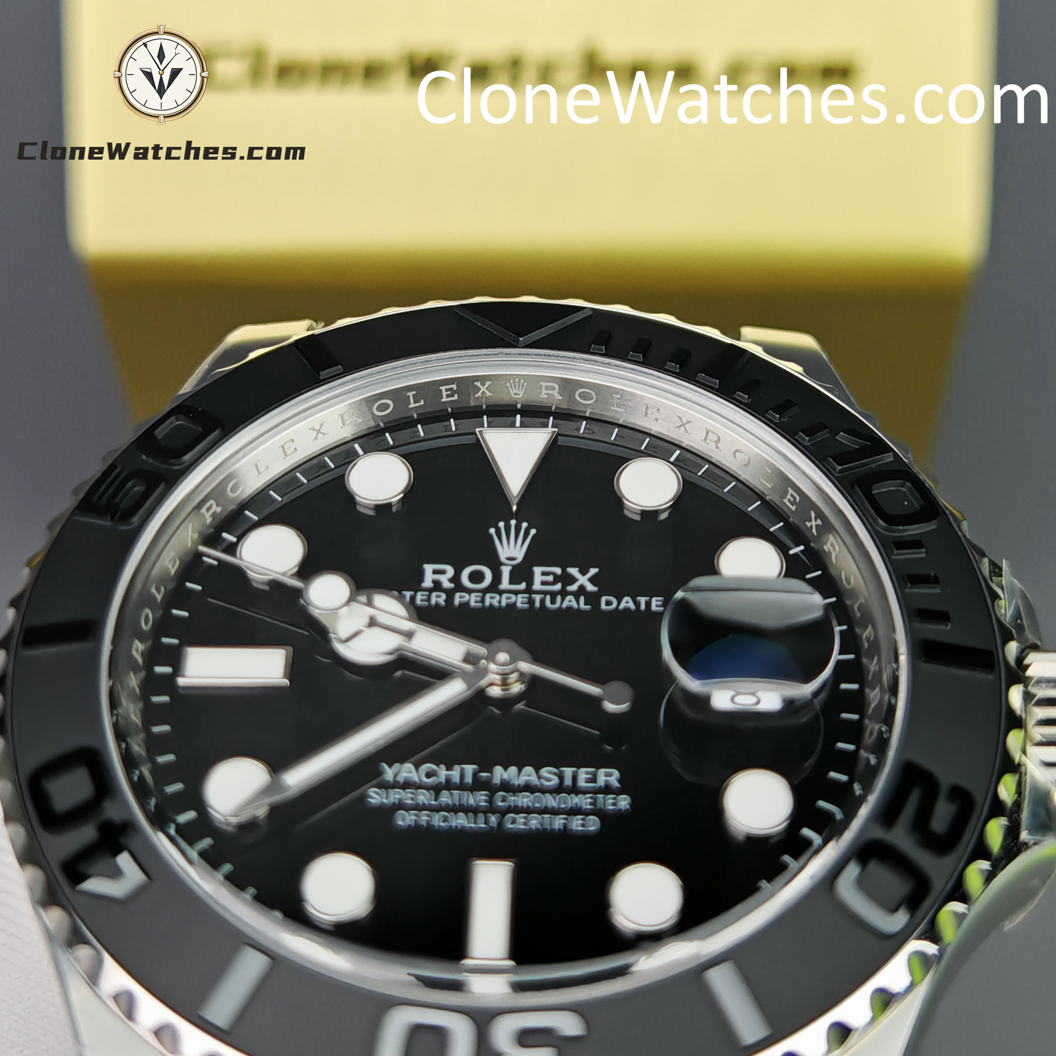 | Functions | Rolex Yacht-Master 42mm Super Clone Watches features central hour, minute and seconds hands. Instantaneous date for quick setting. Stop seconds function for precise time setting |