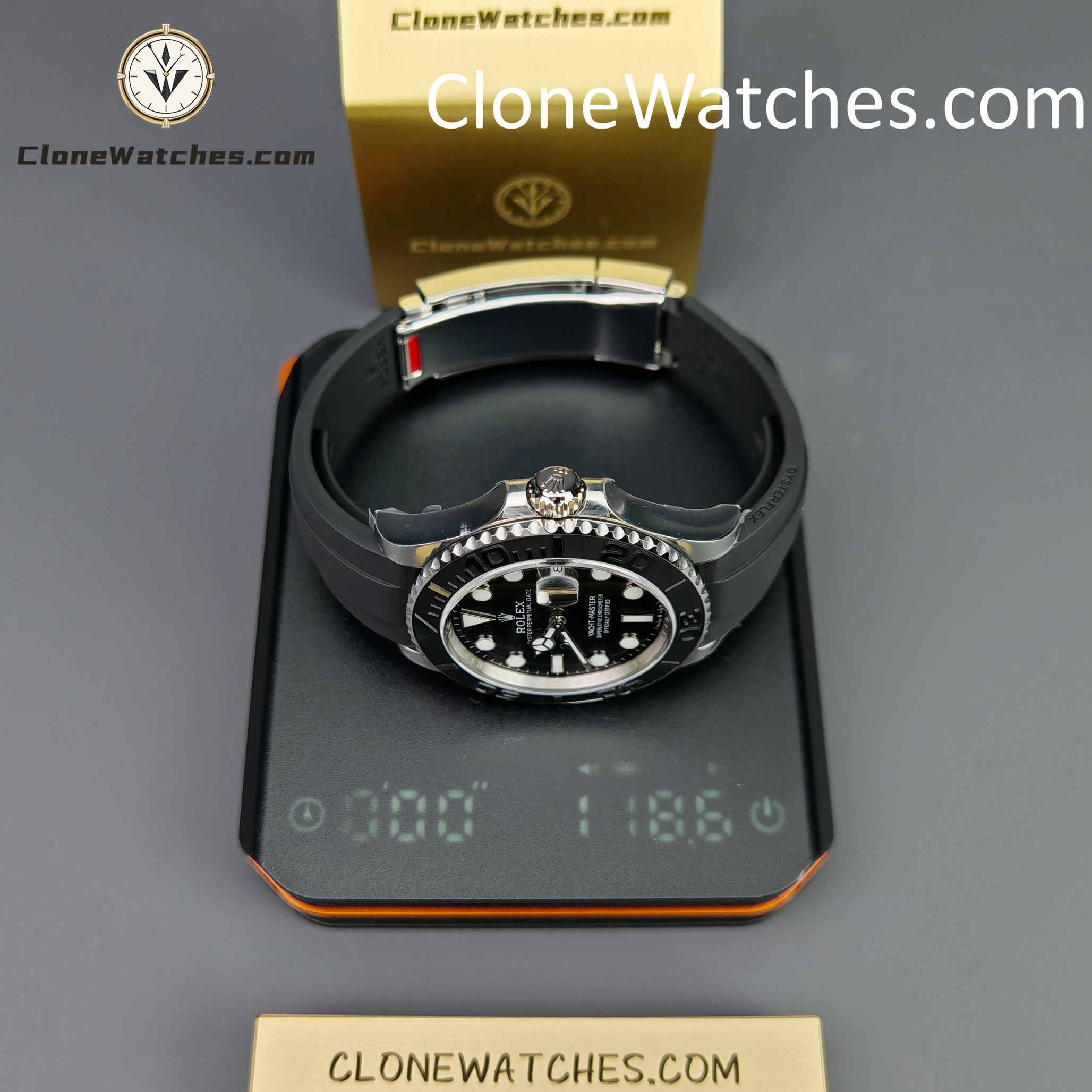 | Strap | High Quality Black Rubber Oysterflex strap |